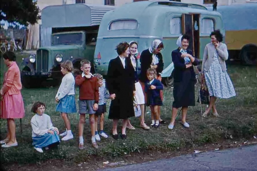 Viviane, enfant du bourg, bien plus vive que nous enfants de la campagne, déambule sur sa bicyclette bleue. On sort d’un long hiver, d’une période difficile que fut la guerre et tout d’un coup le printemps et la fête amènent une légèreté du corps et de l’esprit.