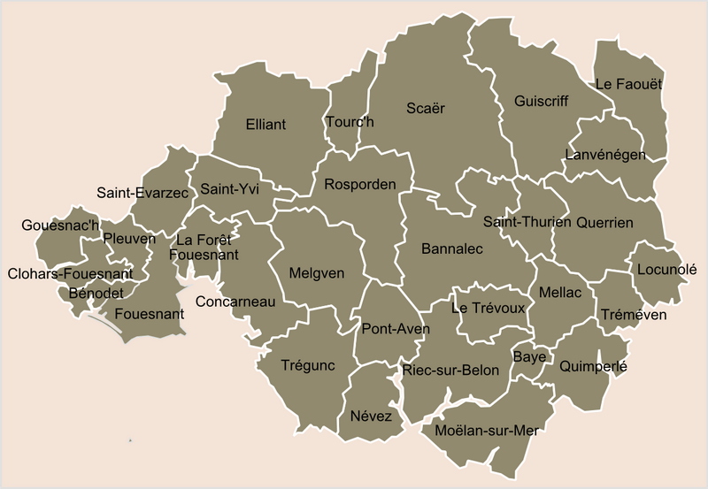 Les coiffes de Trégunc, Riec, Névez, Pont-Aven, Melgven, Concarneau et d’autres communes voisines ont la même origine : ces coiffes correspondent au territoire de GIZ FOUENN (mode de Fouesnant).