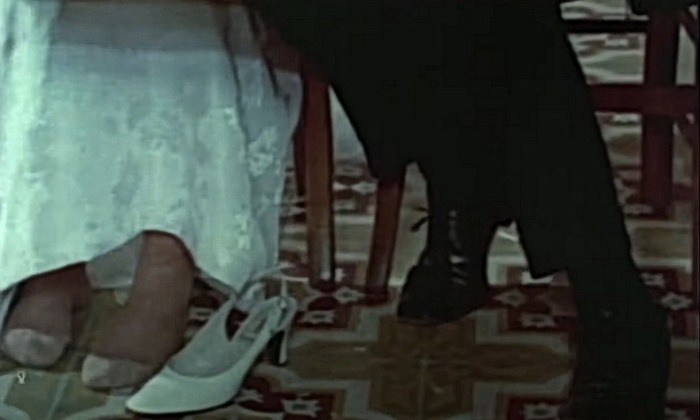 Je manque indubitablement d’expérience pour les chaussures à hauts talons ! Ce n’est qu’une fois assise dans la salle de restaurant que je pourrai enfin soulager mes pieds en enlevant discrètement mes chaussures… enfin le croyais-je ! Le cameraman très observateur s’en aperçoit et ne se prive pas pour faire un gros plan là-dessus ! Mais je m’en fous, au moins mes pieds rigolent… et se détendent.