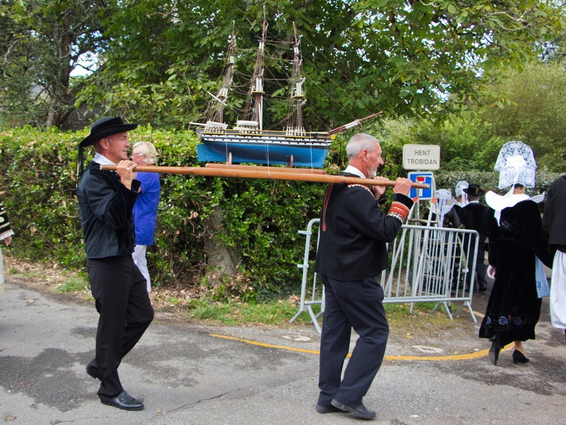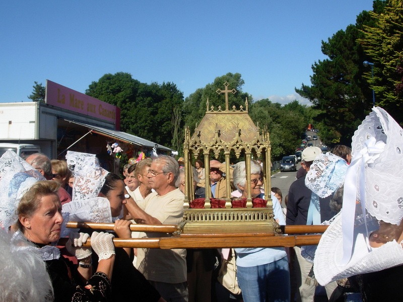 À Saint-Philibert en Trégunc, la fête de la Translation de la relique est organisée par le recteur Canévet le dimanche 25 août 1901, jour du pardon. Celle-ci a été déposée dans un reliquaire en bronze doré. Dès le dimanche matin, à 8 heures, sous un beau soleil, la procession se met en place près de l’église du bourg de Trégunc. En tête, la belle croix d’or puis le reliquaire et les bannières ; suivent les sœurs et leurs élèves, le clergé et une foule de paroissiens. À une centaine de mètres de la chapelle, les processions de Névez et de Saint-Philibert rejoignent celle de Trégunc. Après l’accolade traditionnelle des croix et des bannières, la procession se dirige vers la chapelle, accompagnée des marins en uniforme blanc portant le drapeau national et le navire de Saint-Philibert paré de son grand pavois.