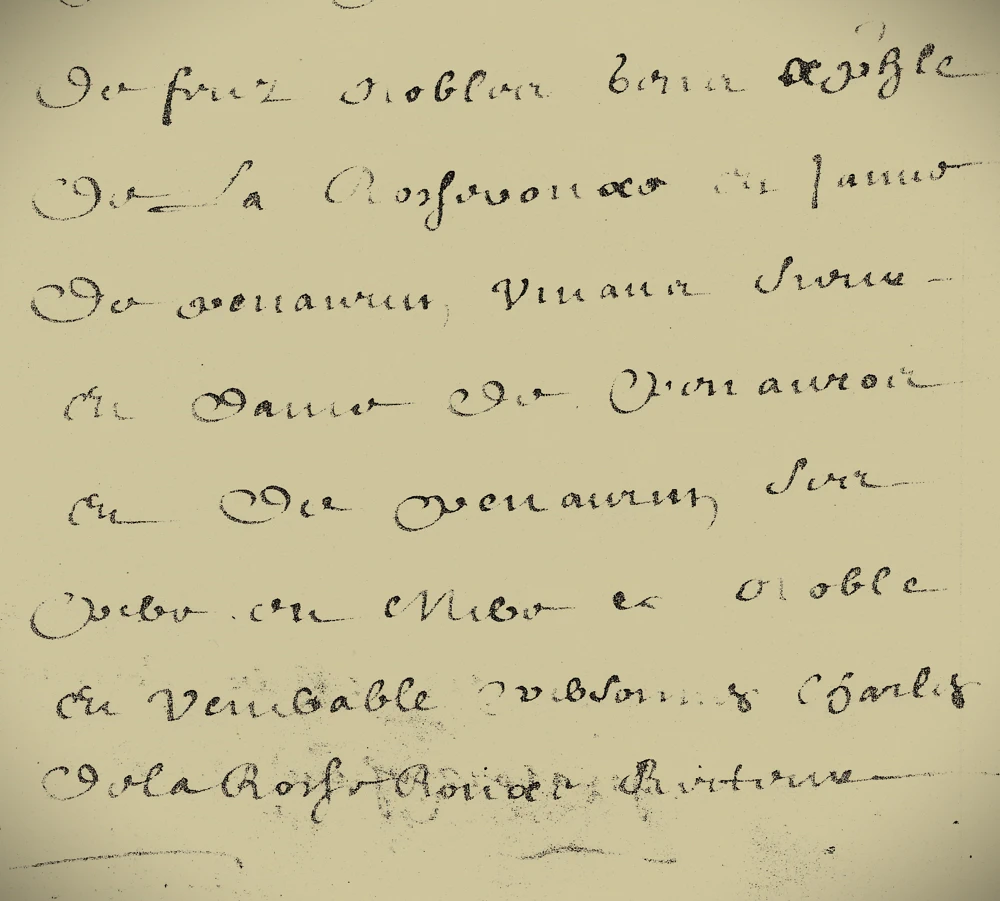 - Famille de la Rocherousse, branche de Penanros. Extrait des registres de la chambre établie par le Roi, pour la réformation de la noblesse de la province de Bretagne, du 8 juin 1669. Archives privées ↩︎
