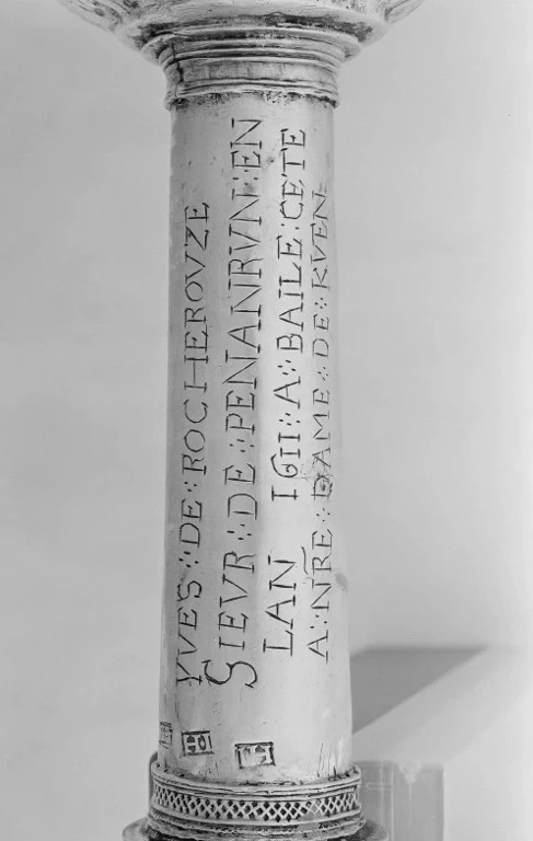 Yves de la Rocherousse s’est uni à Etiennette de Lainlouët17, d’une famille originaire de Pleyben, ils sont qualifiés de seigneur et dame de Penanrun, Penanros et Kersalaün ; ce dernier, manoir en Trégunc dont la moitié appartient au seigneur de Penanrun. Dans ses notes, Arthur le Beux nous apprend ceci : Le 18 juillet 1607, l’écuyer Yves de la Rocherousse, rend aveu de devoir à l’abbaye de Sainte Croix de Quimperlé, la sixième partie du Morvoux18, il s’agit d’un pot de fer contenant des charbons et du suif. Ce système était utilisé pour l’éclairage du réfectoire des moines pendant le souper entre les vêpres et le premier son des complies, ceci entre la Saint Michel et le premier jour de carême. Le Morvoux, en raison des mauvaises odeurs, fut remplacé par des chandelles, mais le nom de la taxe versée par certains nobles pour couvrir les frais d’éclairage continua à être appelée ainsi. Dans le cas de non-paiement de la taxe, une amende journalière était infligée aux nobles contrevenants , elle consistait à verser une jalée de vin, soit environ 15 litres.