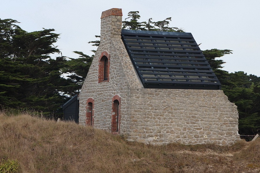 Le dernier vestige de l’usine à iode de Penloc’h (à gauche) deviendra la Maison du littoral (à droite), inaugurée en 1989