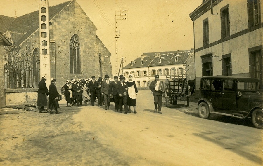 C’est ainsi que le samedi 19 mai 1935, le nouveau marié, (Paotr Nev), Pod Youenn Baradoz (Fils de Yves du Paradis), marin-pêcheur, épouse à Trégunc la nouvelle mariée (Plarc’h Nev), Marjann Pouldorn (Marie-Jeanne de Pouldohan) cultivatrice et fille de Yann Pouldorn (Jean de Pouldohan) . Le mariage civil sera célébré à la Mairie de Trégunc par le Maire Jean-Marie Carduner et la messe de mariage sera dite par le Recteur (‘n Aotrou Person) de la paroisse, Clet Arhan, en l’église du bourg, ( très important : la mariée dépend de l’église Saint-Marc). Aujourd’hui on se marie dans n’importe quelle église ou chapelle de la paroisse.