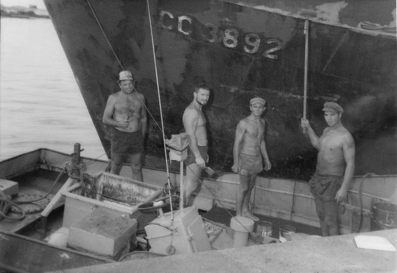 ● Mai 1963 : «six-cents marins sont embarqués sur les thoniers à Dakar. Six à neuf mois de travail, ils vivent douze à treize à bord, en promiscuité, le poste d’équipage est étroit. Avec la chaleur tropicale, le travail est très dur. Nombreux sont les coups de bourre, plusieurs tonnes sont pêchées en une heure. Au cours de la nuit il faut faire l’appât. À chaque marée une seule journée est prévue à quai pour débarquer les thons, embarquer la glace et les vivres. Juste le temps de faire un petit tour au marché de Kermel à cinq cents mètres du port ! »6.