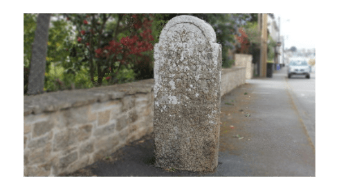 « À mesure que nous avancions, des pierres disséminées sur le sol augmentaient de nombre et de grandeur, et détachaient leurs formes inégales parmi les bouquets d'ajoncs jaunes. Au milieu d'elles se dresse, sur une hauteur de onze pieds, un cône de granit renversé, posée sur une saillie de rocher presque à fleur de terre... »