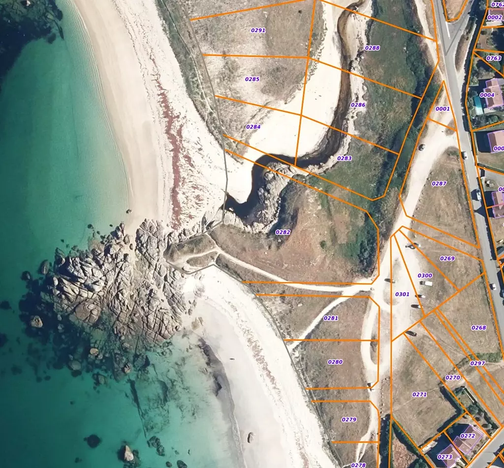 (Géoportail 2022 : cadastre sur vue aérienne)