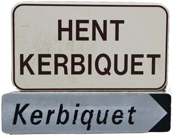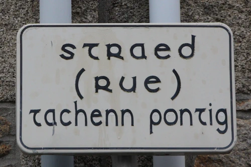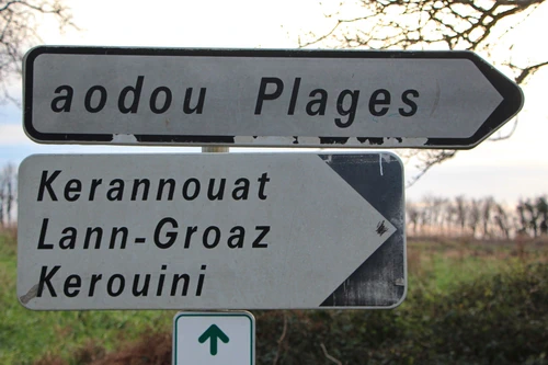 Par ailleurs, le site Kerofis de l’Office public de la langue bretonne produit une carte portant des toponymes en breton, avec quelques manques ; on peut également relever quelques erreurs de localisation (Pont Mélan, Kerous, Feunteun an Aodoù…). Cependant, sur cette carte, la “Route de Pendruc” devient “Hent Pendruk”.