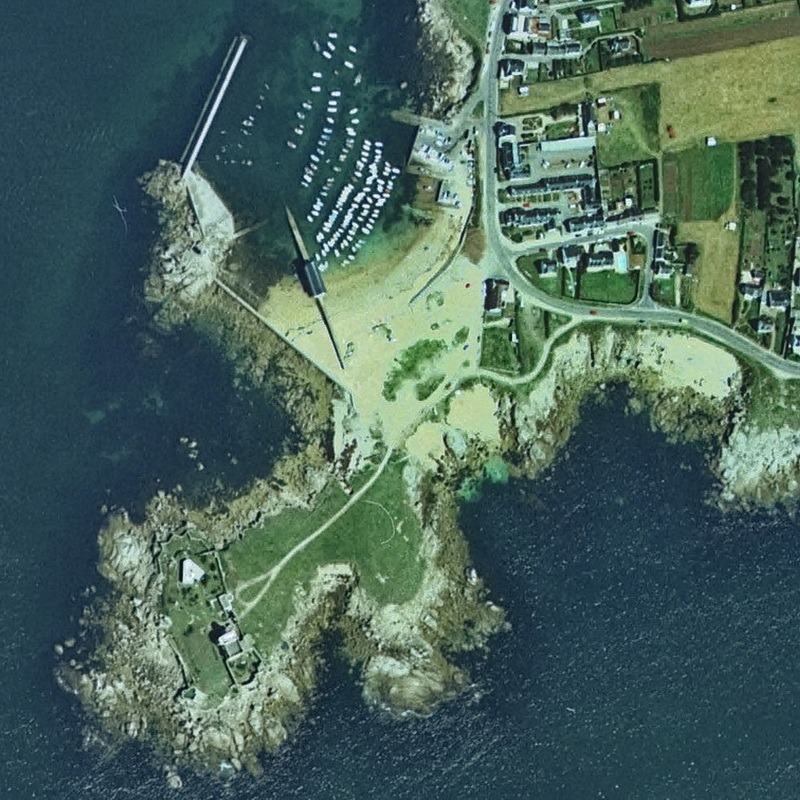 L’extrémité de la Pointe de Trévignon est appelée la Lande par les anciens et par les propriétaires du château. En se référant à la reproduction de la photo aérienne ci- dessous, photo prise à 300 mètres d’altitude en 2007 par M. Laurent, pilote amateur et jadis voisin, nous constatons un amas de sable au nord-ouest et au sud-est, jouxtant l’entrée de la Lande, d’où l’hypothèse d’un îlot. Plusieurs arguments peuvent justifier ce phénomène géologique.